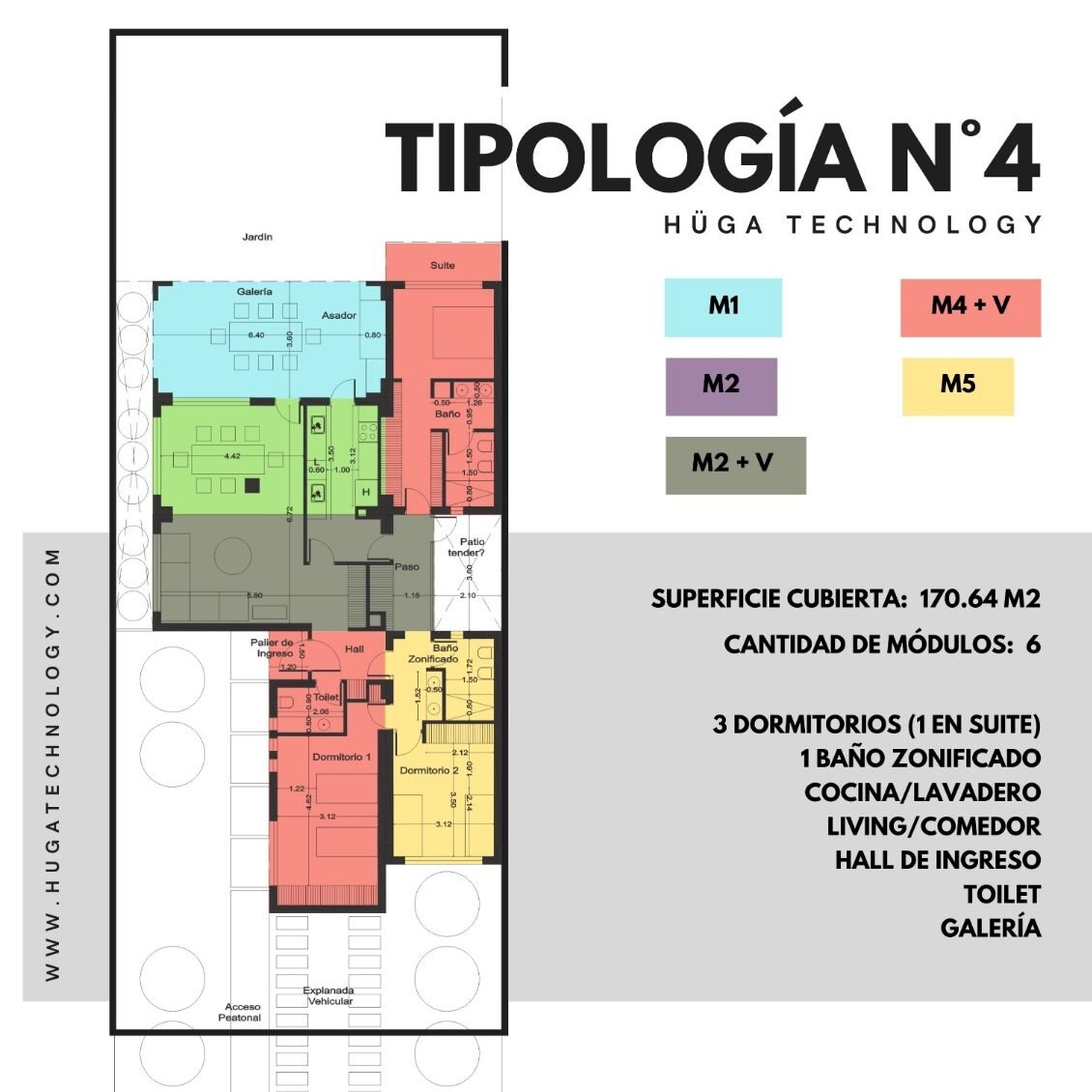 Una propuesta de gran amplitud y diseño contemporáneo, pensada para quienes buscan confort, espacios generosos y la solidez de una construcción de hormigón armado. Esta vivienda de 170,64 m² cubiertos, conformada por 6 módulos Hüga, se entrega en estado estructural (“shell”) para que cada cliente elija libremente sus terminaciones.